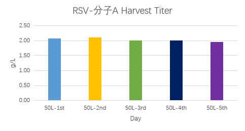 RSV分子A的5個批次的表達量均在2g/L左右,RSV分子B的表達量最高可達3.2g/L左右。